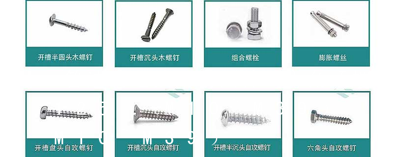 螺栓有:1、方頭螺栓,2、半圓頭方頸螺栓,3、十字槽盤頭螺釘,4、內六角沉頭螺釘,5、方螺母C級,6、蝶形螺母,7、六角頭螺栓,8、十字槽盤頭自攻螺釘。大小有M18、M6、M8、M16、M10、M12、M14、M20等型號。通常用