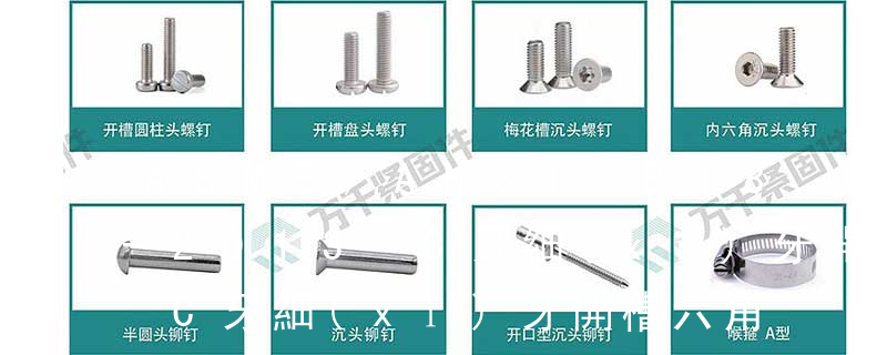 B-1: Sheet Metal Tapping Screw. (鐵板牙自攻螺絲)B-2: Plastic Tapping Screw. ( 塑料用, 自攻螺絲)C: Wooden Screw : 木工螺絲 D: Drywall Screw : 水泥墻螺絲 三. 常見螺絲材質(zhì):a.Low Carbon Steel :低碳鋼