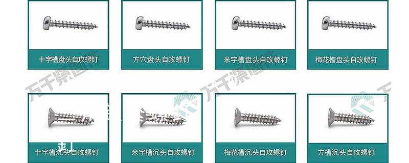 外扳擰:六角、六角法蘭面、六角凸緣、六角花形等;內扳擰:一字槽、十字槽H型(Phillips)、十字槽Z型(Pozidriv)、十字槽F型(Frearson)、四方槽(Scrulox)、復合槽、內花鍵、內六角花形(梅花槽)、內三角、內六角