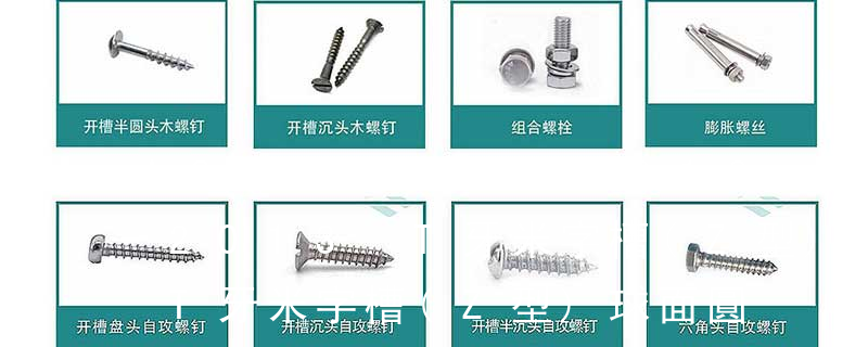 1.機(jī)螺釘 2.自攻螺釘 3.鉆尾螺釘 4.墻板釘 5.纖維板釘 6.木螺釘7.六角木螺釘 8.不脫出螺釘 9.組合螺釘 10.微型螺釘 11.家具螺釘 12.電子螺釘頭型:1.六角頭(hexagon head) 2.六角頭法蘭面(hexagon head with flange) 3.