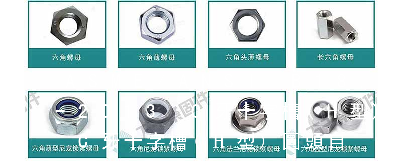 螺栓有:1、方頭螺栓,2、半圓頭方頸螺栓,3、十字槽盤頭螺釘,4、內六角沉頭螺釘,5、方螺母C級,6、蝶形螺母,7、六角頭螺栓,8、十字槽盤頭自攻螺釘。大小有M18、M6、M8、M16、M10、M12、M14、M20等型號。通常用
