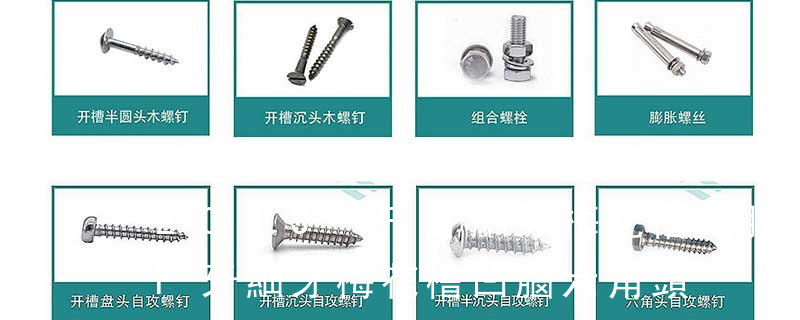 1.機螺釘 2.自攻螺釘 3.鉆尾螺釘 4.墻板釘 5.纖維板釘 6.木螺釘7.六角木螺釘 8.不脫出螺釘 9.組合螺釘 10.微型螺釘 11.家具螺釘 12.電子螺釘 頭型 :1.六角頭(hexagon head) 2.六角頭法蘭面(hexagon head Hexagon head bolts with fine pitch thread full thread六角頭螺栓 細牙 全螺紋 Hexagon flange bolts –heavy series-product grade B 六角法蘭面螺栓 加大系列車員 B級 Cross recessed pan head tapping screws 十字槽盤頭自攻螺釘 Hex